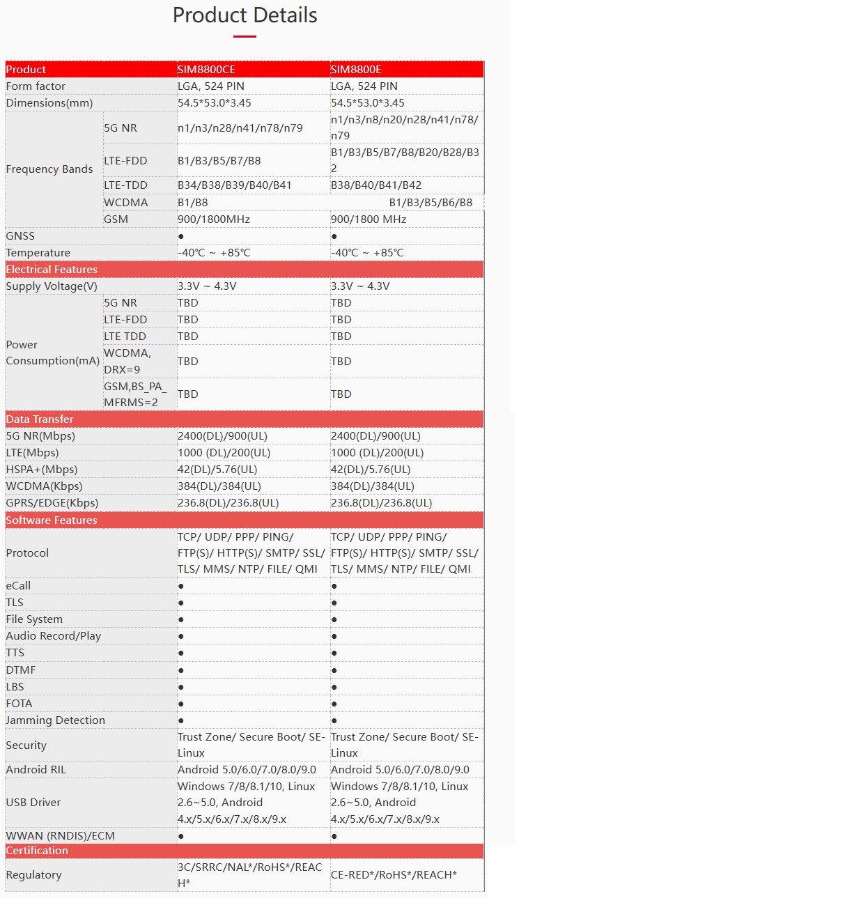The SIM8800 Series module is Automotive Grade Multi-Band 5G NR and C-V2X module which supports R15 5G NSA/SA up to 2.4Gbps data transfer.